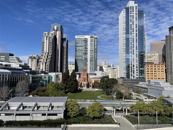 It’s beautiful though, this place. The hills with their carpet of homes, the tall buildings, though not too tall - it’s SF after all. The sun is bright this morning, some clouds in the light blue sky giving it character, the chilly wind creeping under my cardigan, making my fingers tingle the more I write. I watch the occasional seagull wending through the sky.